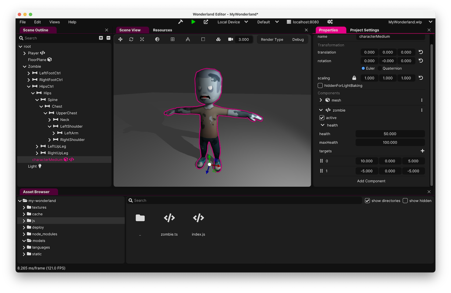 21 const health = zombie.maxHealth;